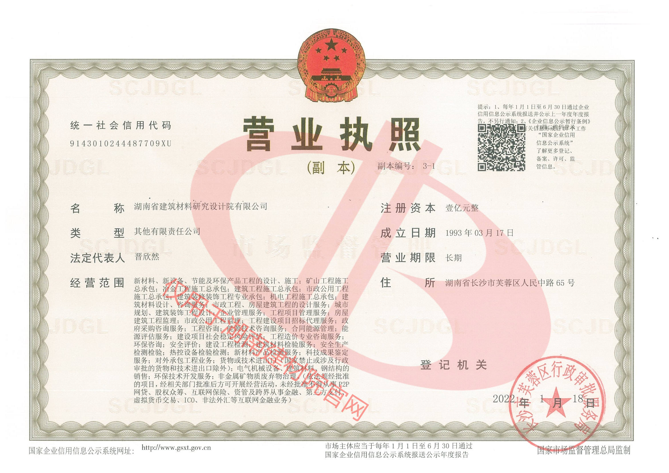 湖南省建筑材料研究設計院有限公司的前身為湖南省建筑材料研究設計院,成立于1958年,是1993年全國首批榮獲國家建材行業(yè)設計、工程總承包甲級資質的四個科研設計單位之一。